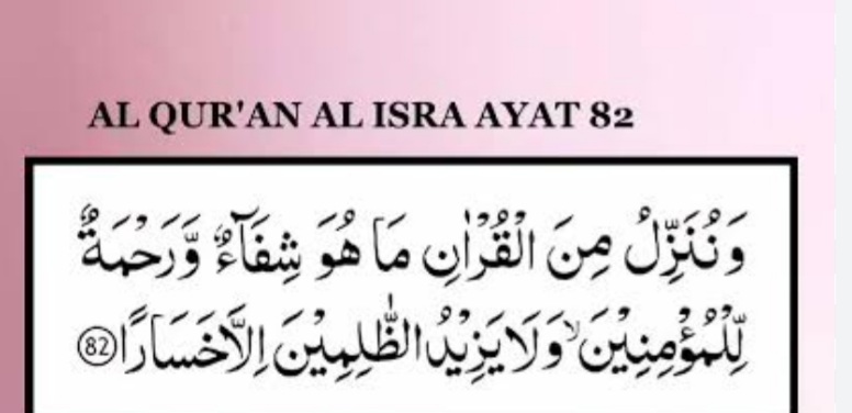 “Dan Kami turunkan dari Al-Qur’an sesuatu yang menjadi penawar dan rahmat bagi orang-orang yang beriman.”